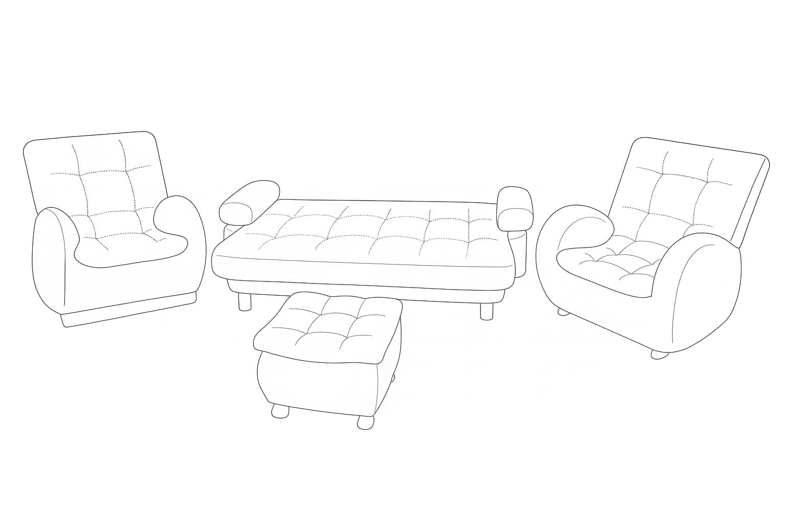 Incluye : 1Sofá cama+ 1silla reclinable + 1silla mecedora + 1puff+3 Cojines.